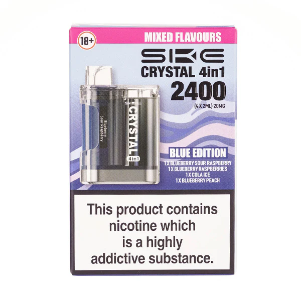 The SKE Crystal 4-in-1 Pod Kit is a prefilled pod kit that offers an ultra-convenient way to vape multiple flavours in one compact device. Designed for MTL vaping, it includes four prefilled 2ml pods that rotate via a built-in carousel, letting you switch flavours with a twist. Perfect for anyone moving away from disposables, this 4-in-1 device delivers up to 2400 puffs in total (600 per pod) without any need to refill or recharge between flavours. The 950mAh battery is USB-C rechargeable (cable sold separately), and inhale activation keeps things simple. Whether you're after variety, portability, or a cleaner way to enjoy your favourite nic salt flavours, the SKE 4-in-1 offers a satisfying and straightforward solution.