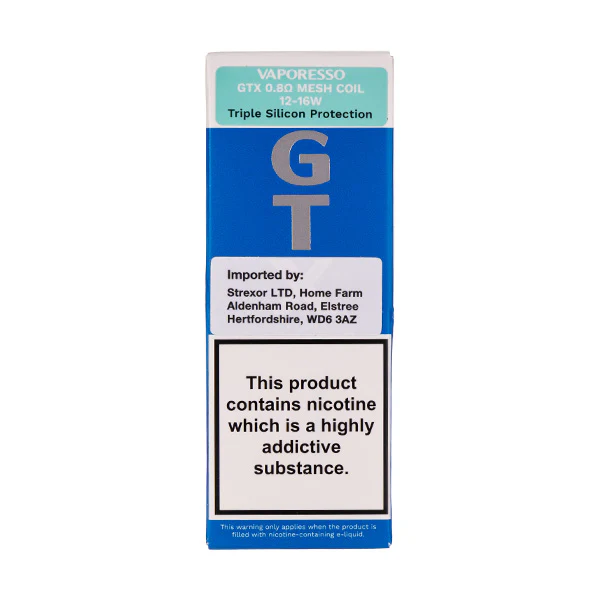 Supplied in a pack of 5, the Vaporesso GTX coils are easily installed in the 2ml pods with a push-in, pull-out mechanism. For use with the Target PM30, Luxe PM40 and GTX one, only the 0.6ohm, 0.8ohm and 1.2ohm are compatible. For the Target PM80, PM80SE and Swag PX80, the full range of GTX coils is compatible.