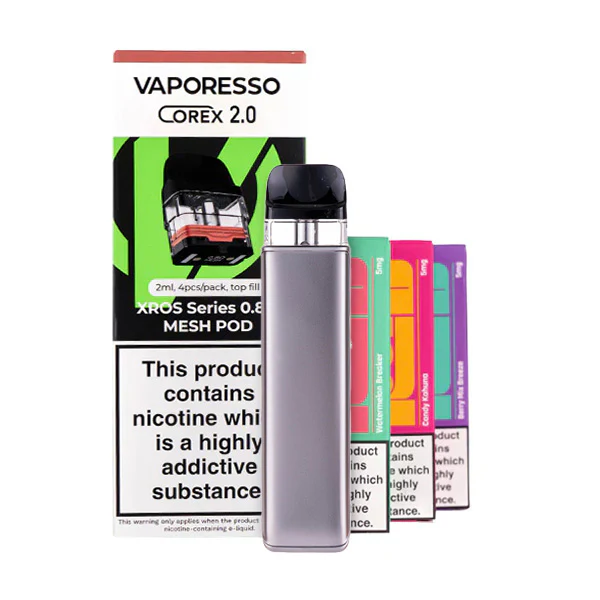 - Vaporesso XROS 5 Mini Pod Kit - Lightweight, no-fuss device with 30W max output, Corex 3.0 mesh tech for flavour and AXON-Chip Smart Mode.