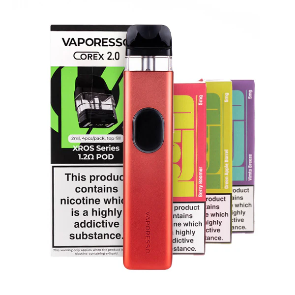 This XROS 5 vape bundle combines the latest in top of the line pod vaping. The XROS Series is famous for its flavour and ease of use and the XROS 5 takes things to new heights, with the improved Corex 3.0 mesh coils, bigger battery and helpful display. With three 10ml nic salts and a spare pack of refillable pods - all with over 20% off - you can enjoy powerful performance and convenient refills in one go!